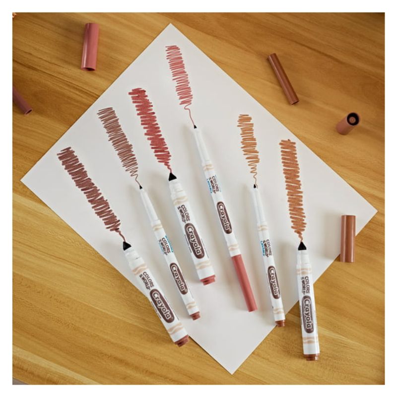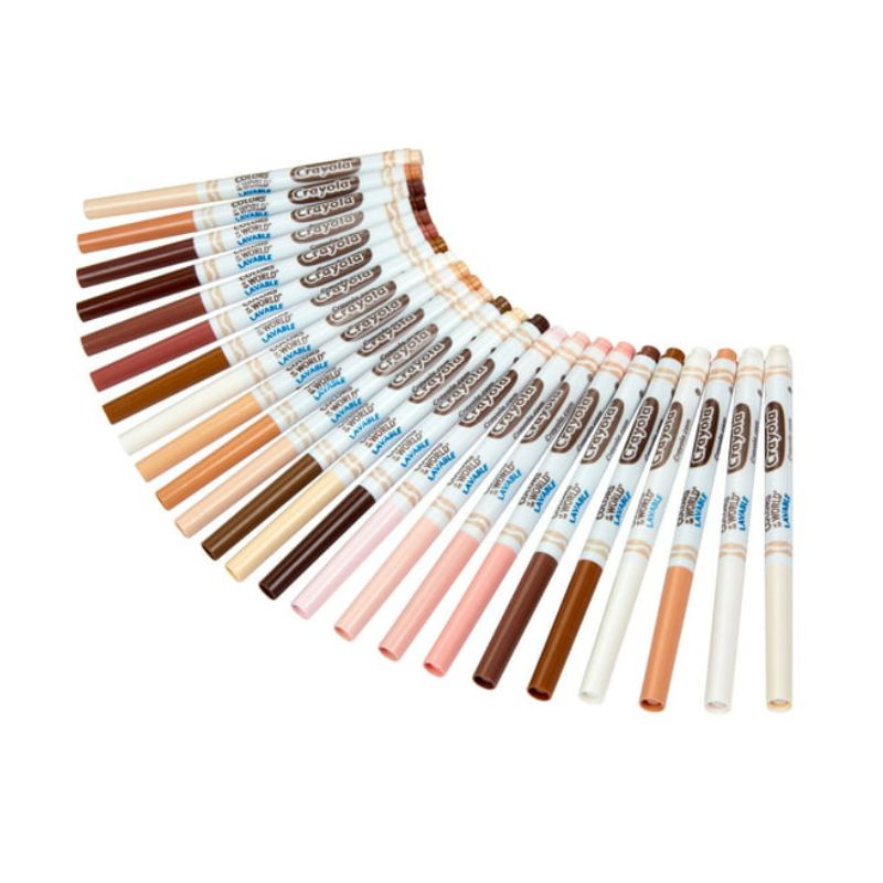 Los marcadores de línea fina Crayola Colors of the World contienen 24 colores lavables especialmente formulados que representan a personas de todo el mundo.