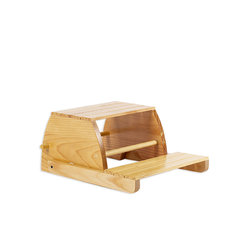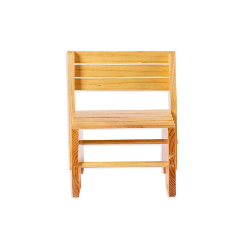 Cuenta con dos funciones, el de silla para que puedan sentarse y de grada para que puedan alcanzar lugares que le queden altos como un lavamanos.