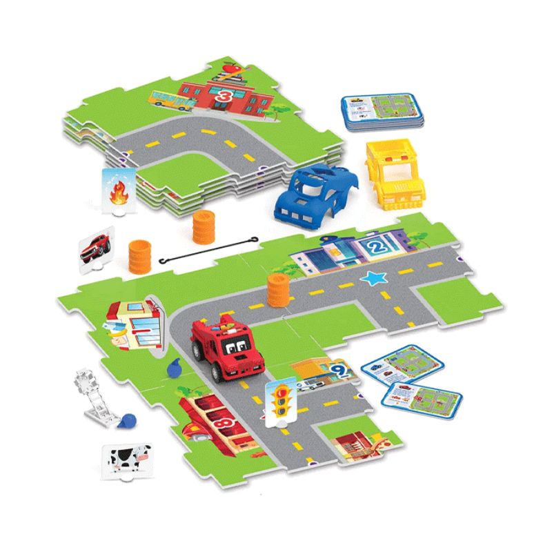 Contenido: 46 piezas, 3 vehículos, accesorios y tarjetas de juego.