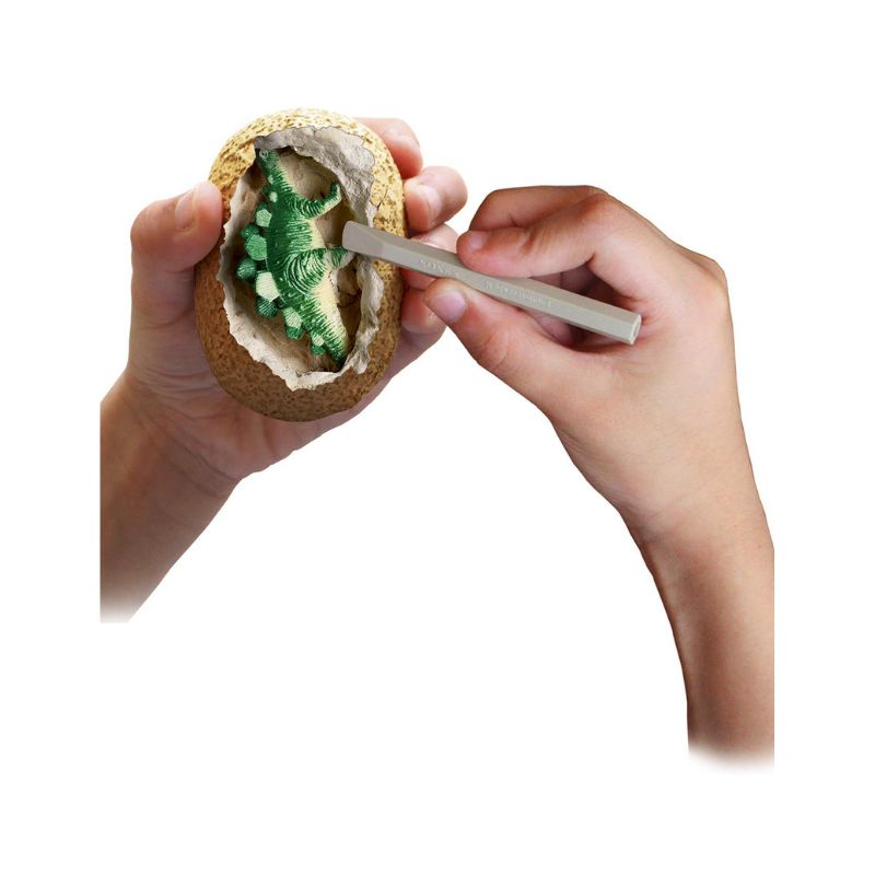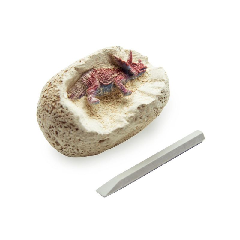 Contenido: Herramienta para excavar en la roca, huevo y dinosaurio sorpresa.