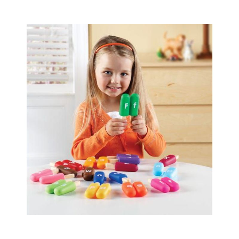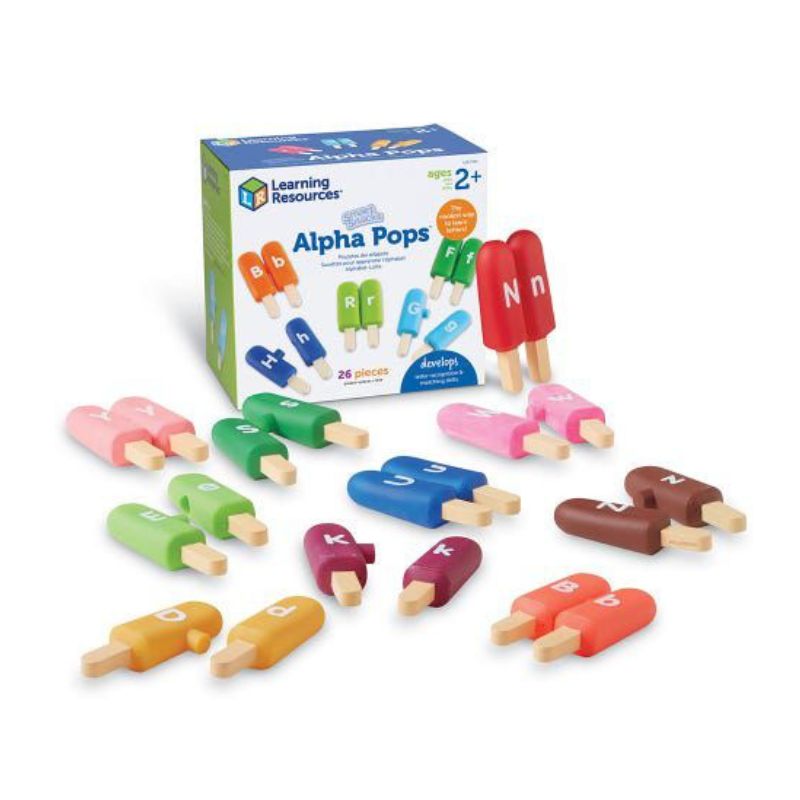 Los Alpha pops hacen clic juntos, para que los más pequeños puedan unir letras minúsculas con letras mayúsculas, y viceversa.