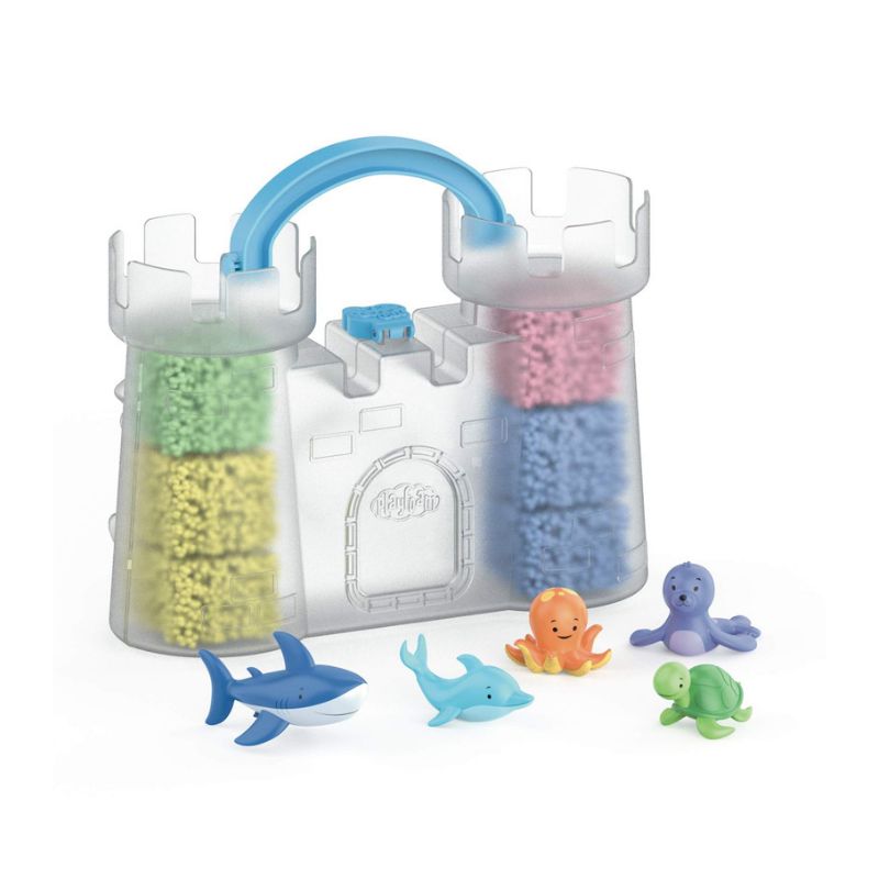 Contenido: 1 funda de transporte en forma de castillo, 6 ladrillos de Playfoam y 5 figuras de criatura marina.