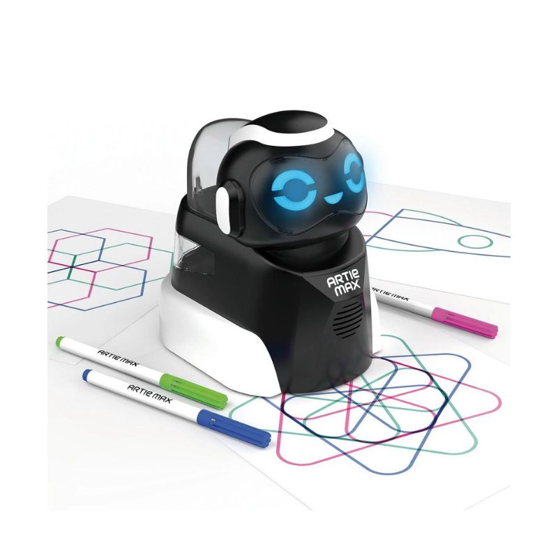 Los niños siguen instrucciones sencillas paso a paso para escribir código en cinco idiomas integrados (Blockley, Snap, JavaScipt, Python y C++), luego Artie Max dibuja sus creaciones codificadas a todo color sobre papel.
