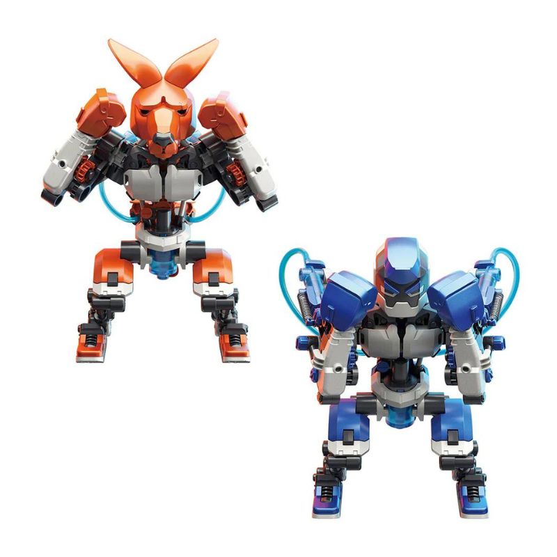 Lleno de la emoción de un combate de boxeo y la diversión de construir increíbles modelos mecánicos, este kit te permite construir dos robots de boxeo y desafiar a un amigo a un combate.