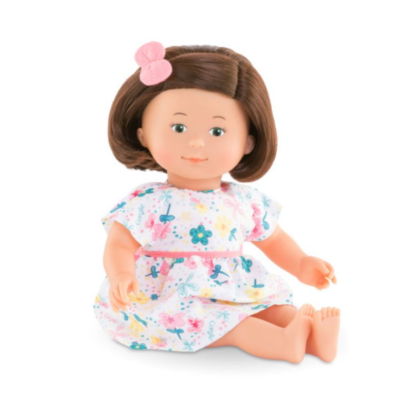 Vestida con un vestido con estampado floral y con un coletero a juego en el pelo, Jasmine es una de las tres muñecas de la colección Les Florolles Corolle, todas especialmente diseñadas para las más pequeñas que juegan con muñecas por primera vez.