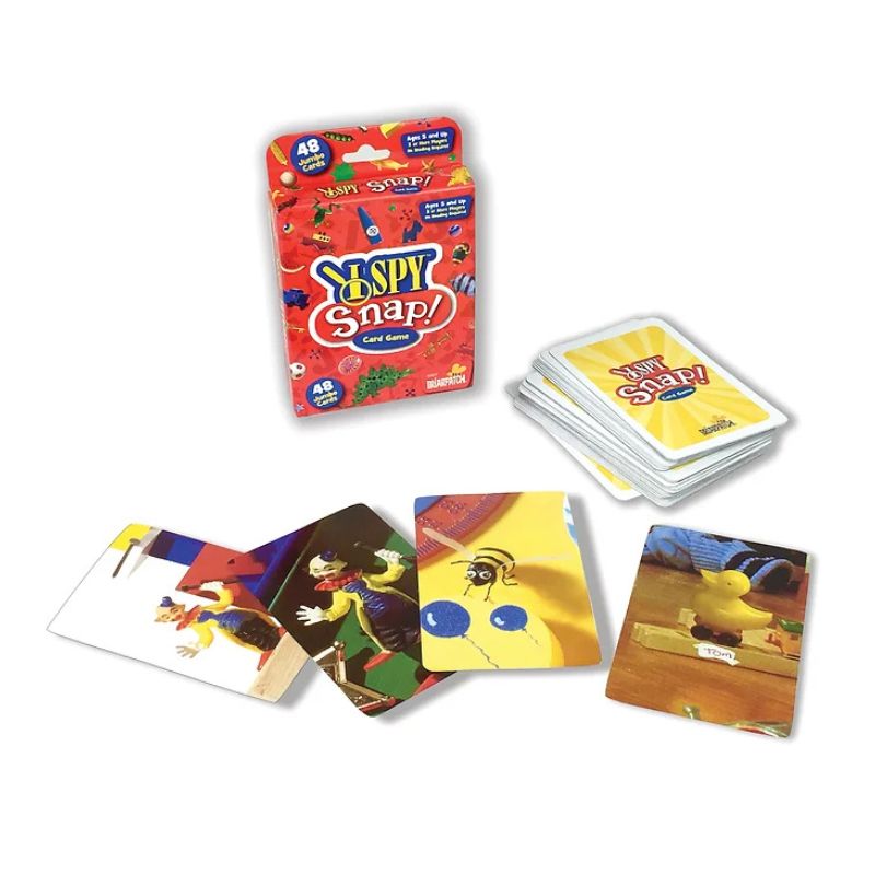 I SPY Snap! le da un giro a un juego de cartas clásico. Los jugadores dan vuelta una carta a la vez. Si ves una carta que coincida entre las cartas que se dan vuelta, ¡sé el primero en decir el nombre del objeto! El jugador con más cartas gana.
