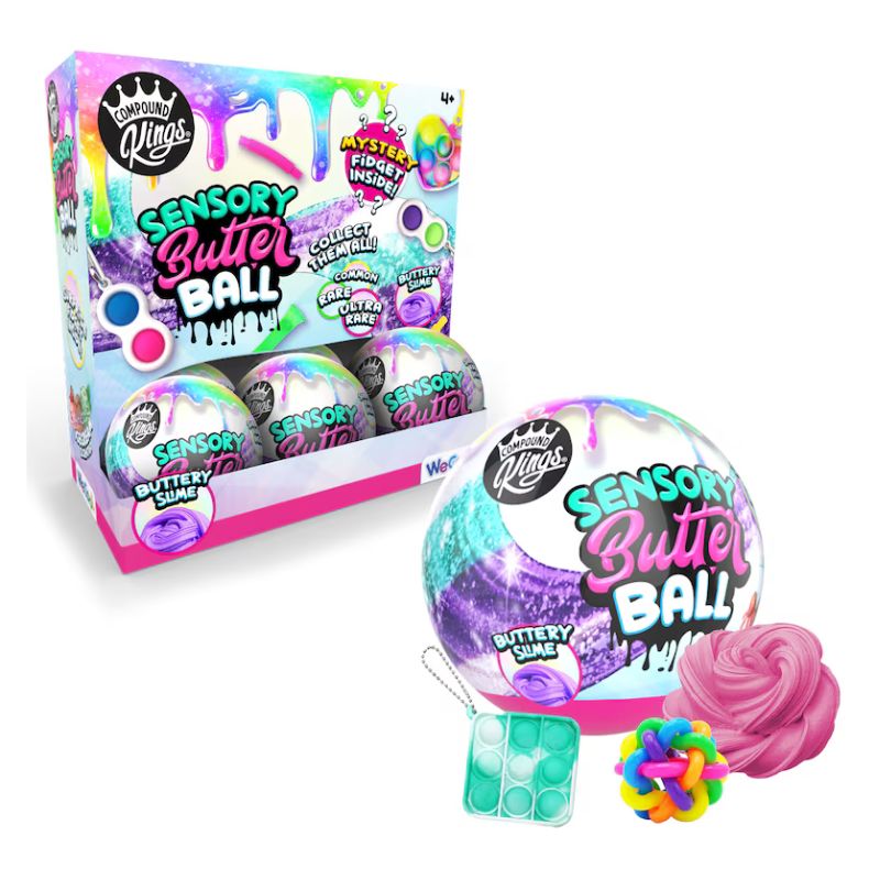 Cuenta con un compuesto perfumado con remolinos de mantequilla, interior de plástico y juguete antiestrés sorpresa.