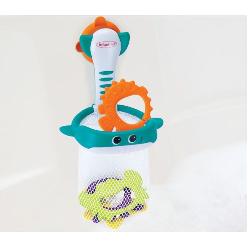 ¡Nadar será mucho más divertido con este set de pesca! Con ayuda de la red, el niño intentará recoger las figuras marinas que flotan en la superficie.