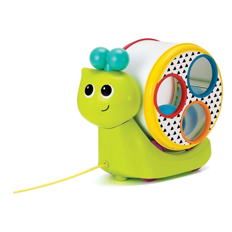 Se puede jugar con este caracol de juguete de muchas maneras: tíralo, coloca las formas dentro de su caparazón o desmóntalo para seguir jugando.