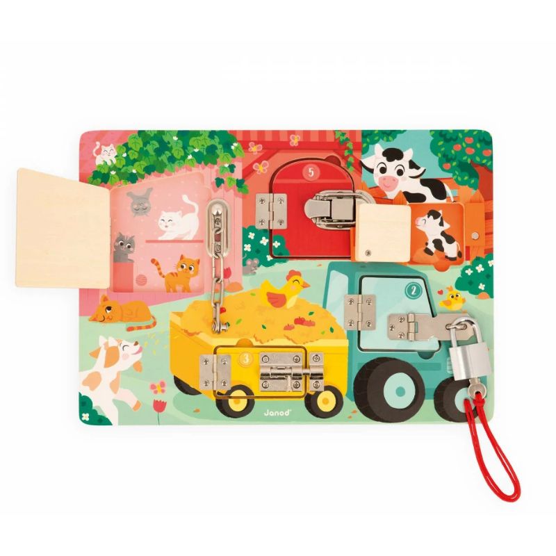 Cerraduras, cerrojos, llaves… ¡a los niños les encantan! ¡Así que disfrutarán un montón descubriendo, pensando y experimentando con los animales de la granja en su propio tablero de cerraduras!