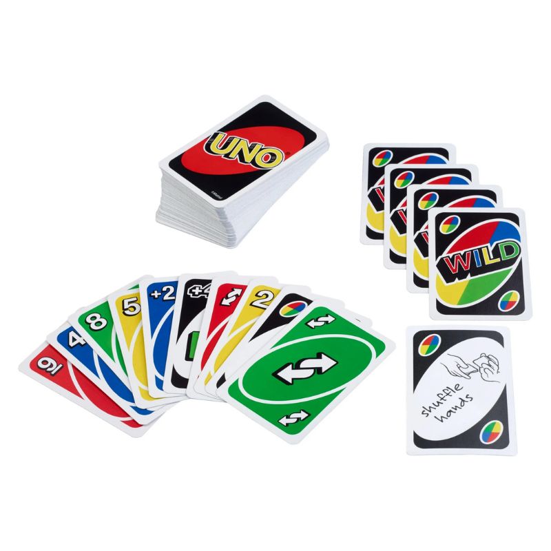 Los jugadores se turnan para emparejar las cartas por color o número, con cartas de acción especiales como Saltar, Invertir y Roba Dos que añaden emoción.