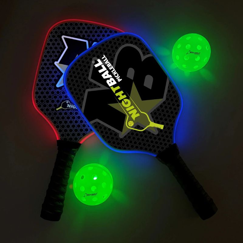 Los niños pueden seguir jugando al aire libre gracias a este set de pickleball iluminado con dos palas y dos pelotas LED.