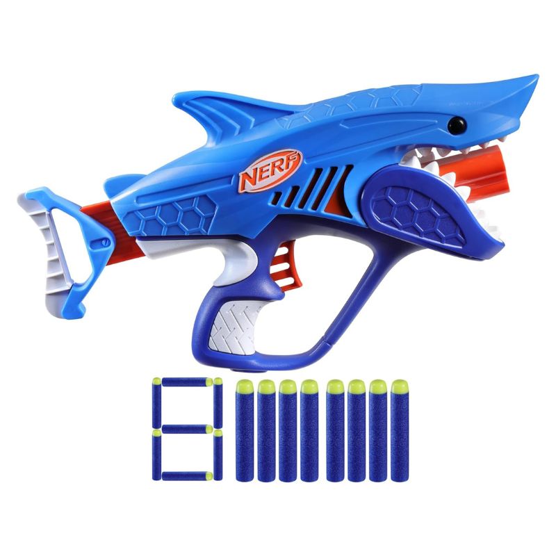 El lanzador Nerf Junior Wild Sharkfire presenta un temible diseño de tiburón que captura la apariencia de este feroz pez con colores geniales y detalles emocionantes.