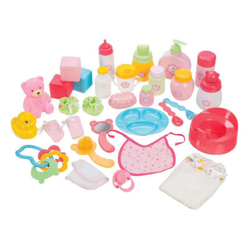 El juego de cuidado de bebé contiene todo lo que necesita una muñeca bebé en crecimiento.
