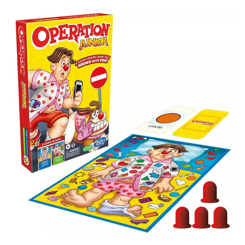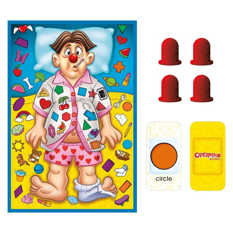 Este juego de mesa de Operación Junior, protagonizado por Cavity Sam del juego original de Operación, es una divertida aventura de búsqueda de formas;Incluye 2 niveles de diversión para crecer con los niños.