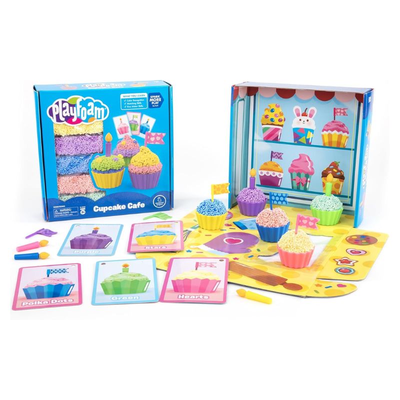 Elige una tarjeta de creación de cupcakes, aplasta la Playfoam en los envoltorios de cupcakes incluidos, añade los aderezos y velas a juego, y sírvelos con un lado dulce de aprendizaje de forma y color, patrones y combinación.