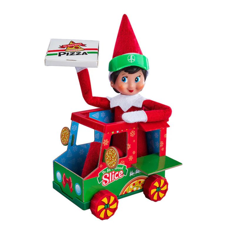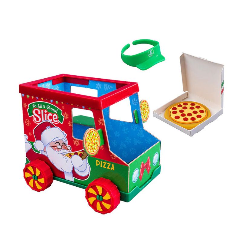 Tu elfo ofrece alegría suprema en este camión de comida de pizza polar.