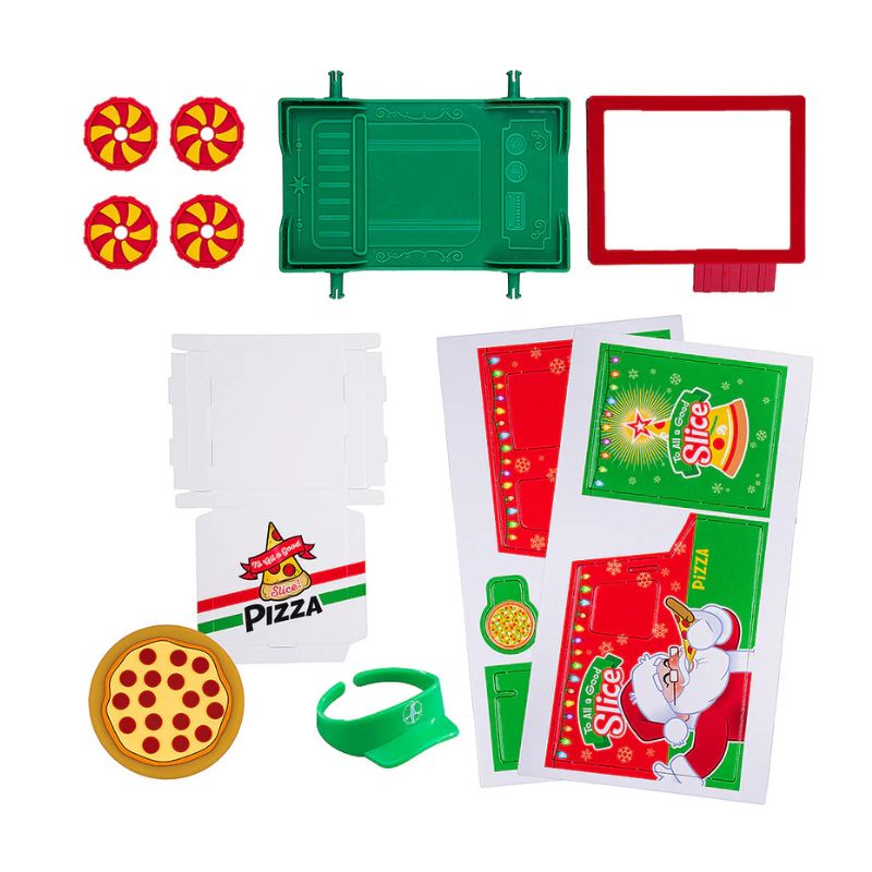 Una forma encantadora de anunciar una noche de pizza familiar, este juego de accesorios para elfos viene con todo lo que necesitan, incluyendo una pizza del tamaño de un elfo, para unirse a la diversión.