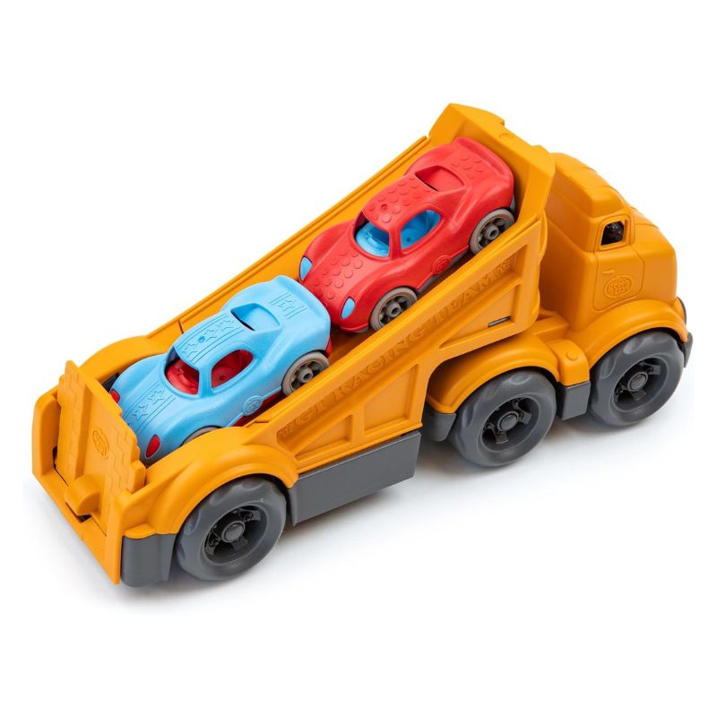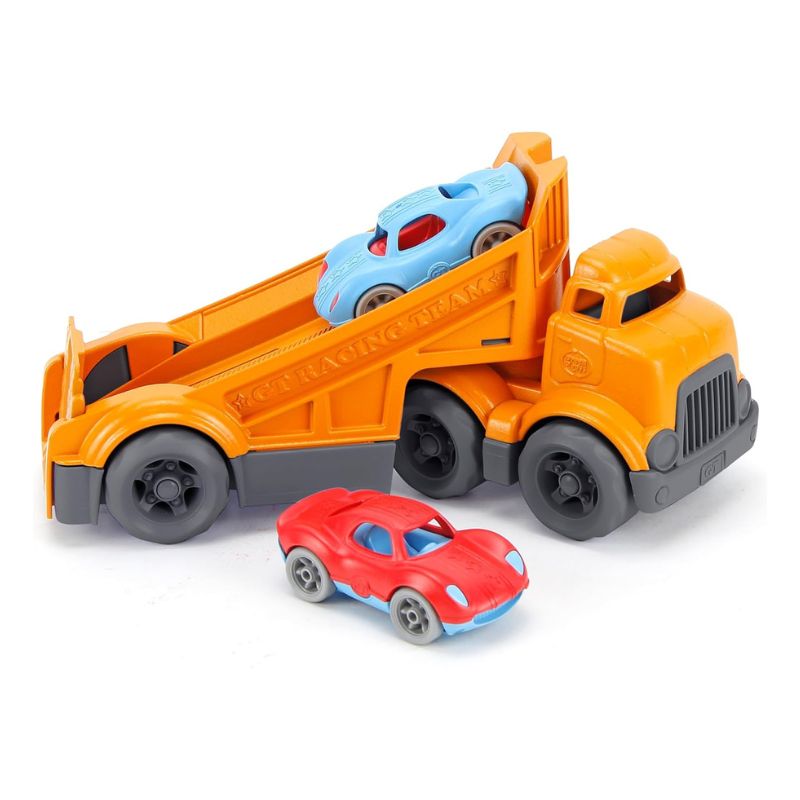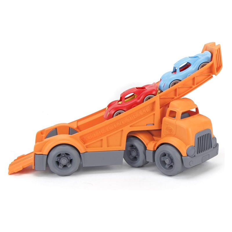 Deja que tu pequeño se desplace con estilo con el set de camiones de carreras de Green Toys.